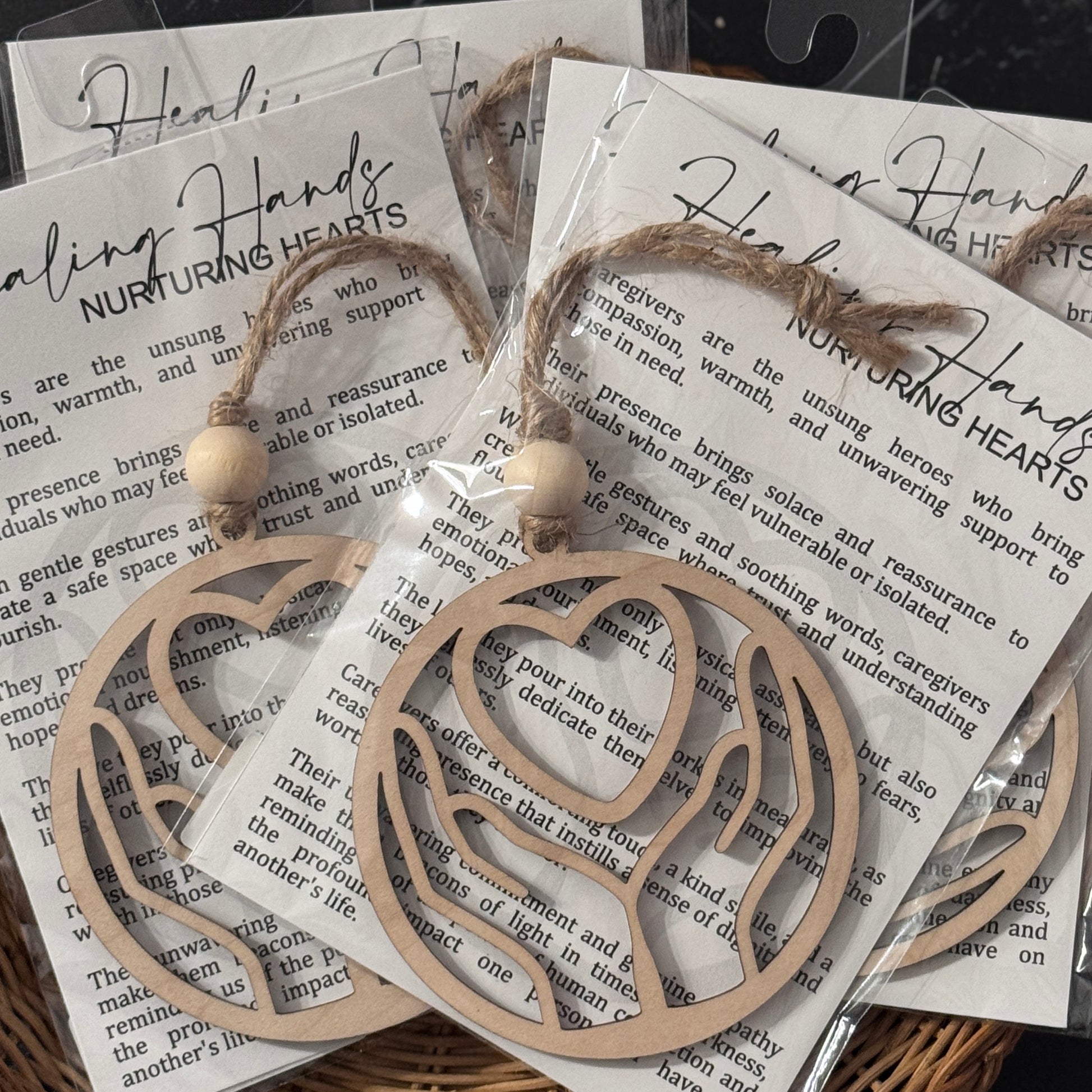 Give the gift of appreciation with our Healing Hands Wood Ornament -Nurturing Hands. Show your gratitude for our unsung heroes with this handcrafted maple plywood ornament.