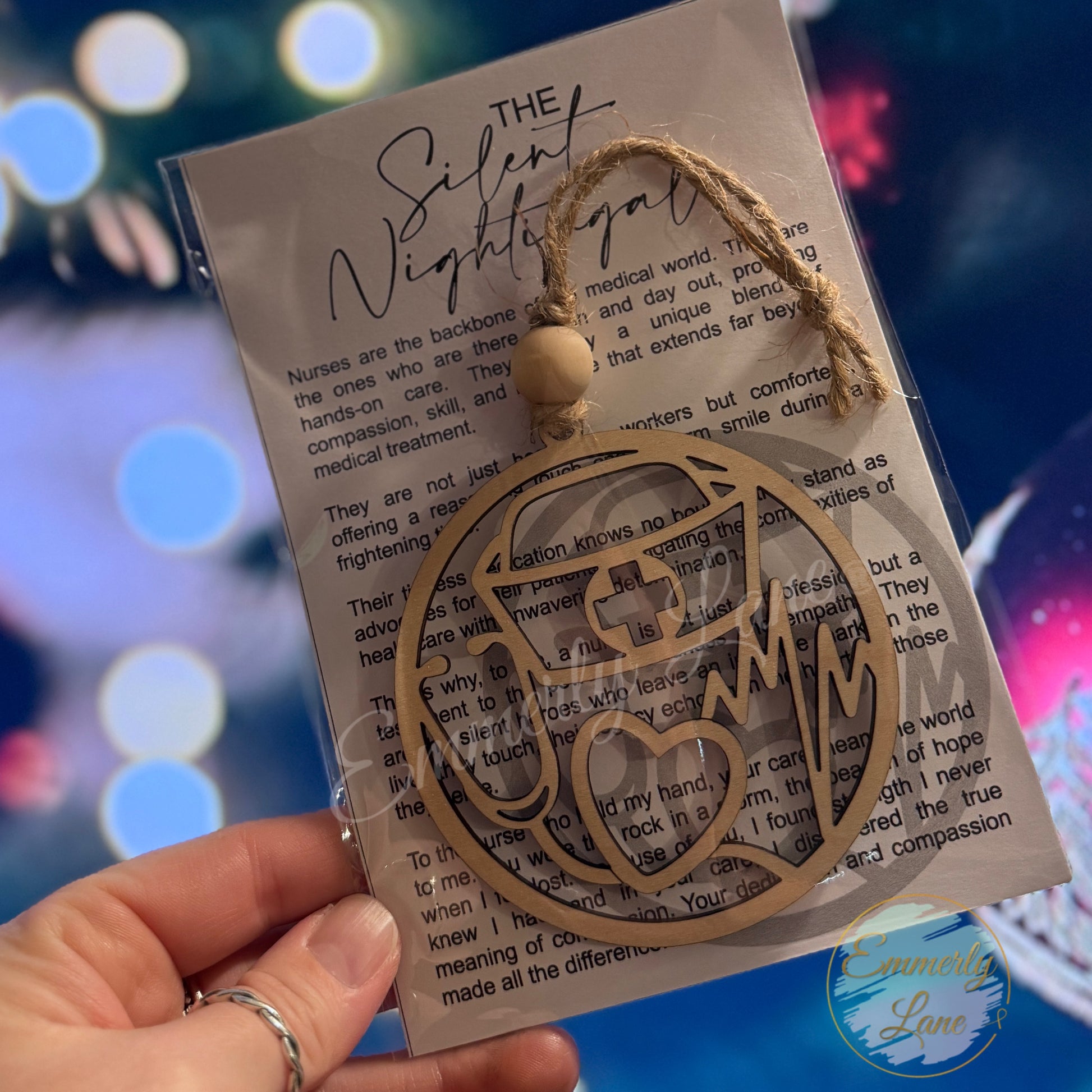 Give the gift of appreciation with our Nurse Wood Ornament - The Silent Nightingale. Show your gratitude for the silent heroes of the medical world with this handcrafted maple plywood ornament.